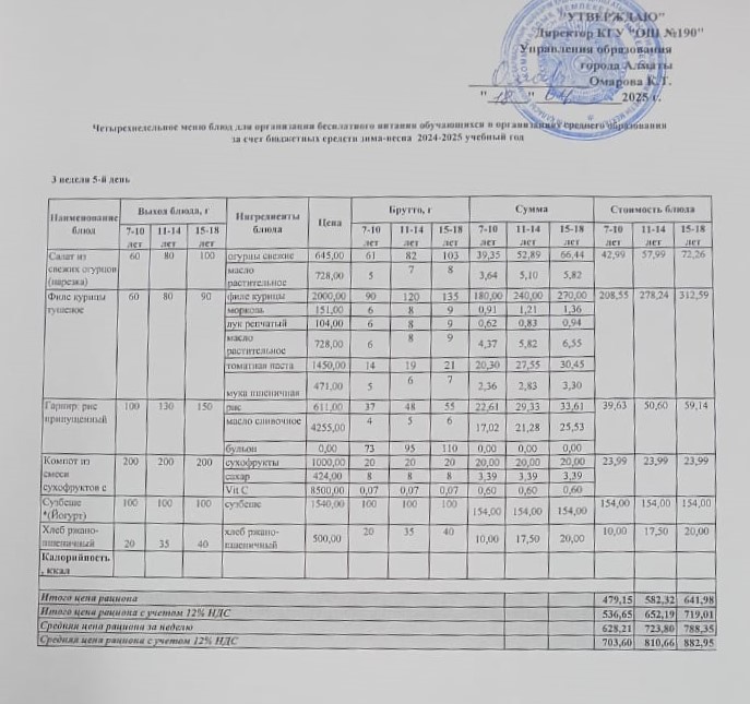 Меню 2 апта 2 күн... Меню 2 неделя 2 день