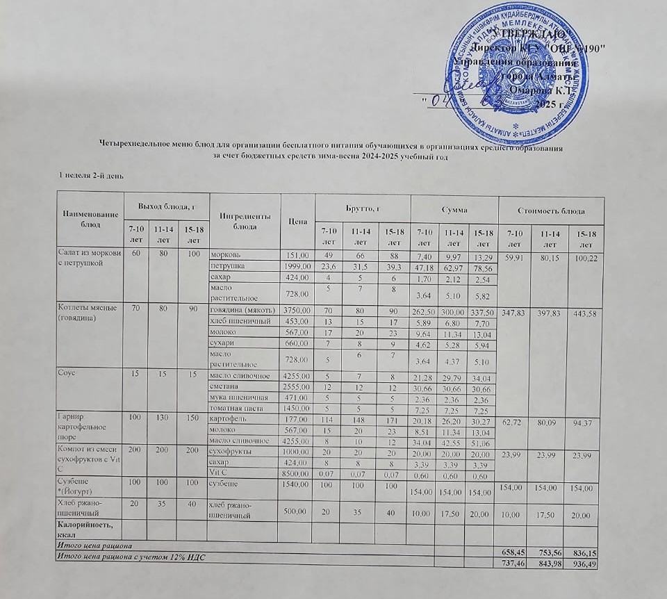 2 апта 4 күн... Меню 2 неделя 4 день