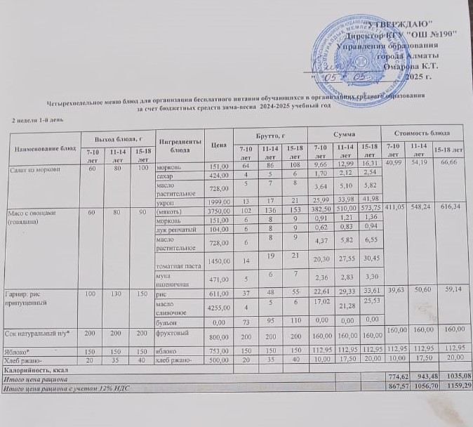 Меню 2 апта 2 күн... Меню 2 неделя 2 день