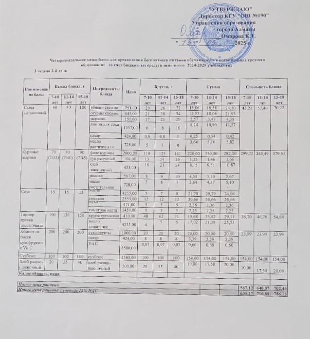 2 апта 4 күн... Меню 2 неделя 4 день