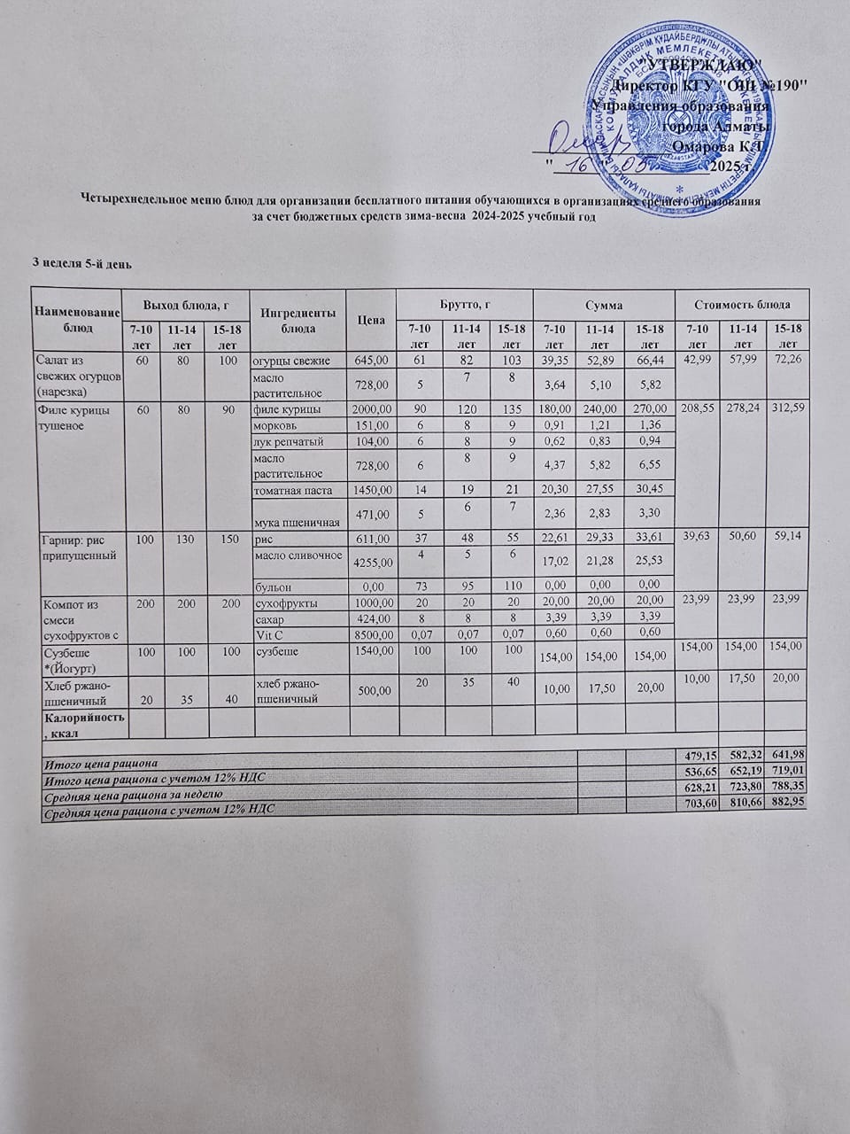 2 апта 4 күн... Меню 2 неделя 4 день