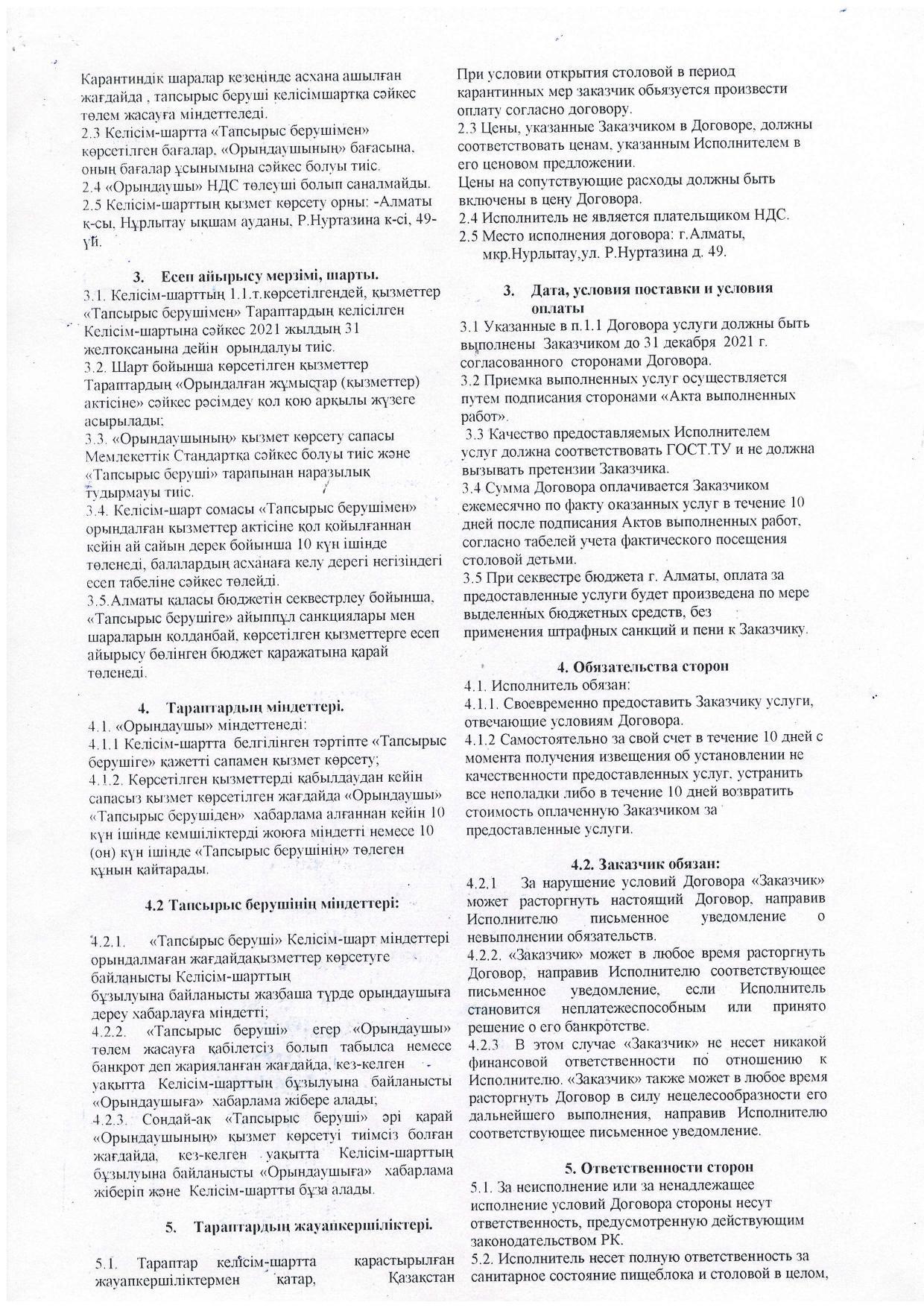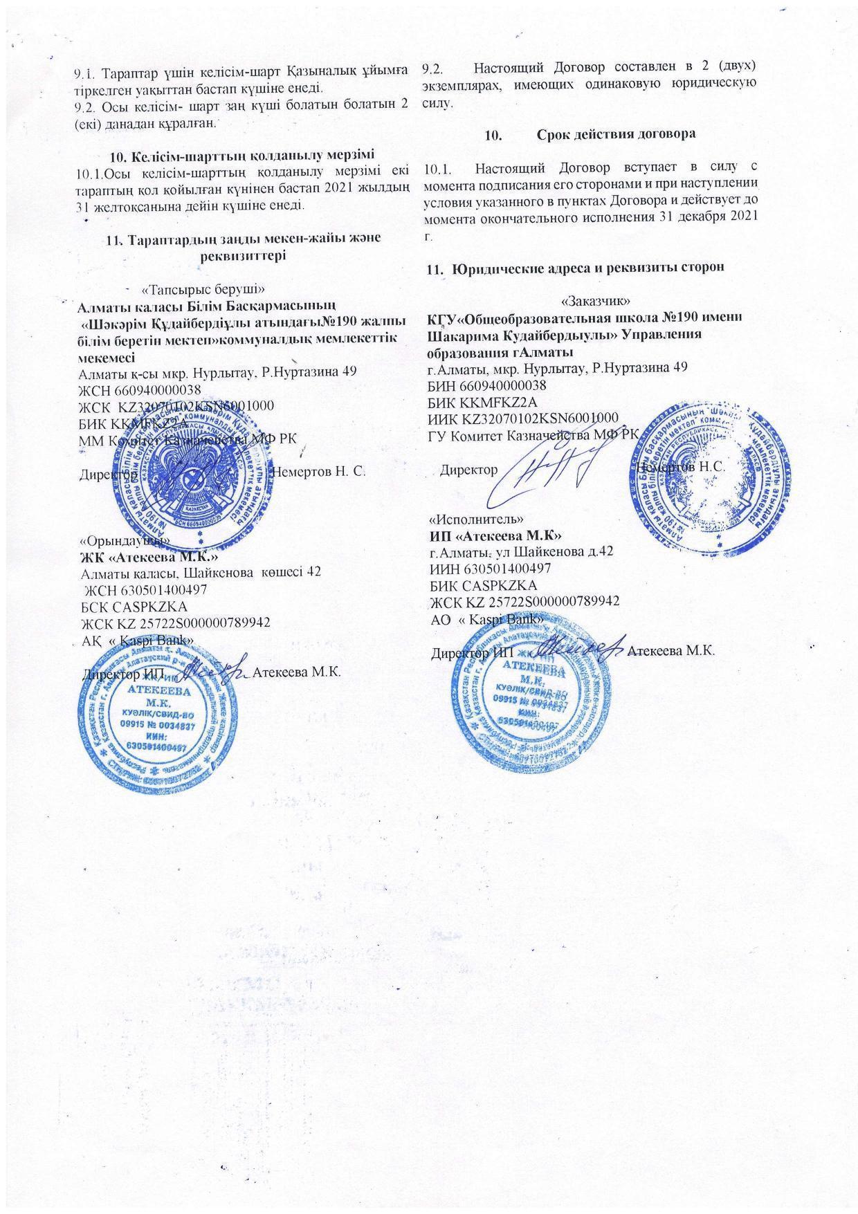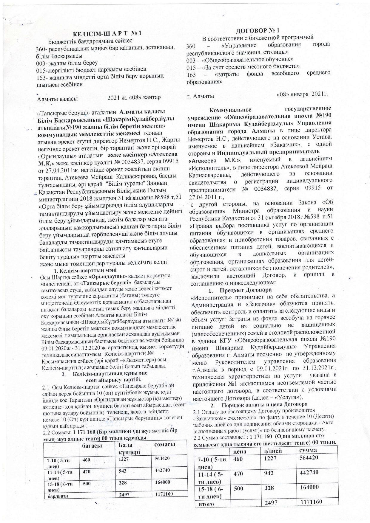 » 2021 жылғы 08 қаңтардағы №1 шарт