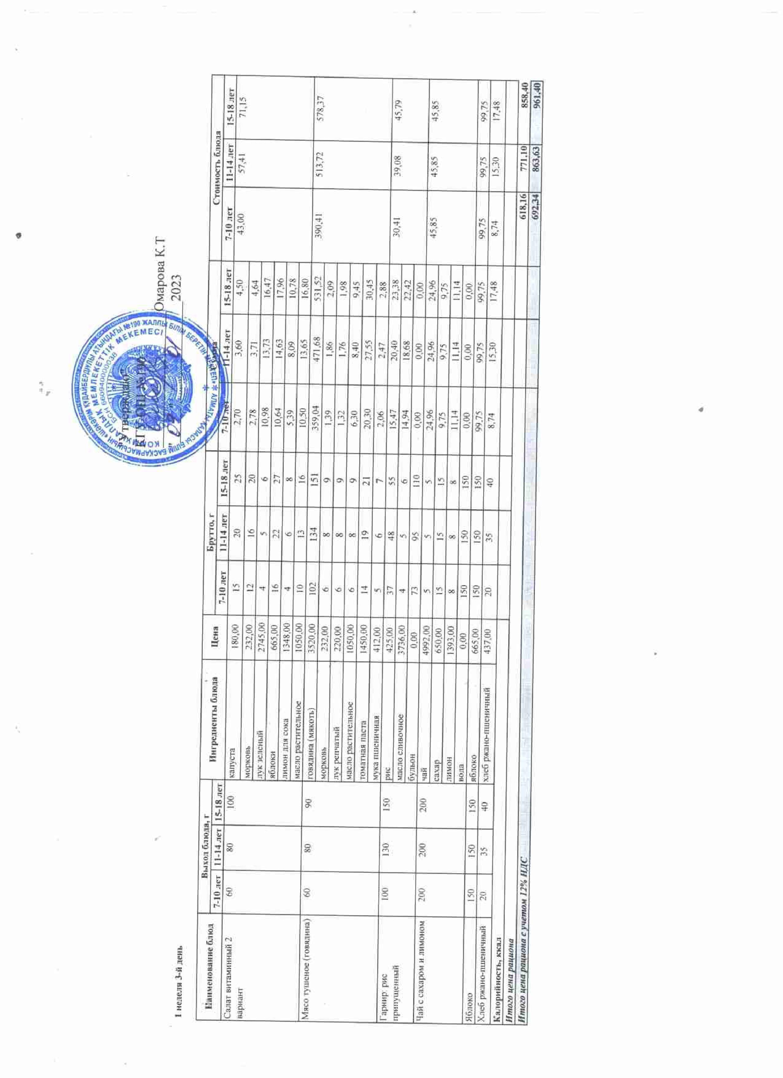 09 қаңтар 2023 0 1 2 3 4 5 Асхана қыс-көктем ас мәзірі 2023 жыл...............................Меню в столовой зима-весна 2023 год